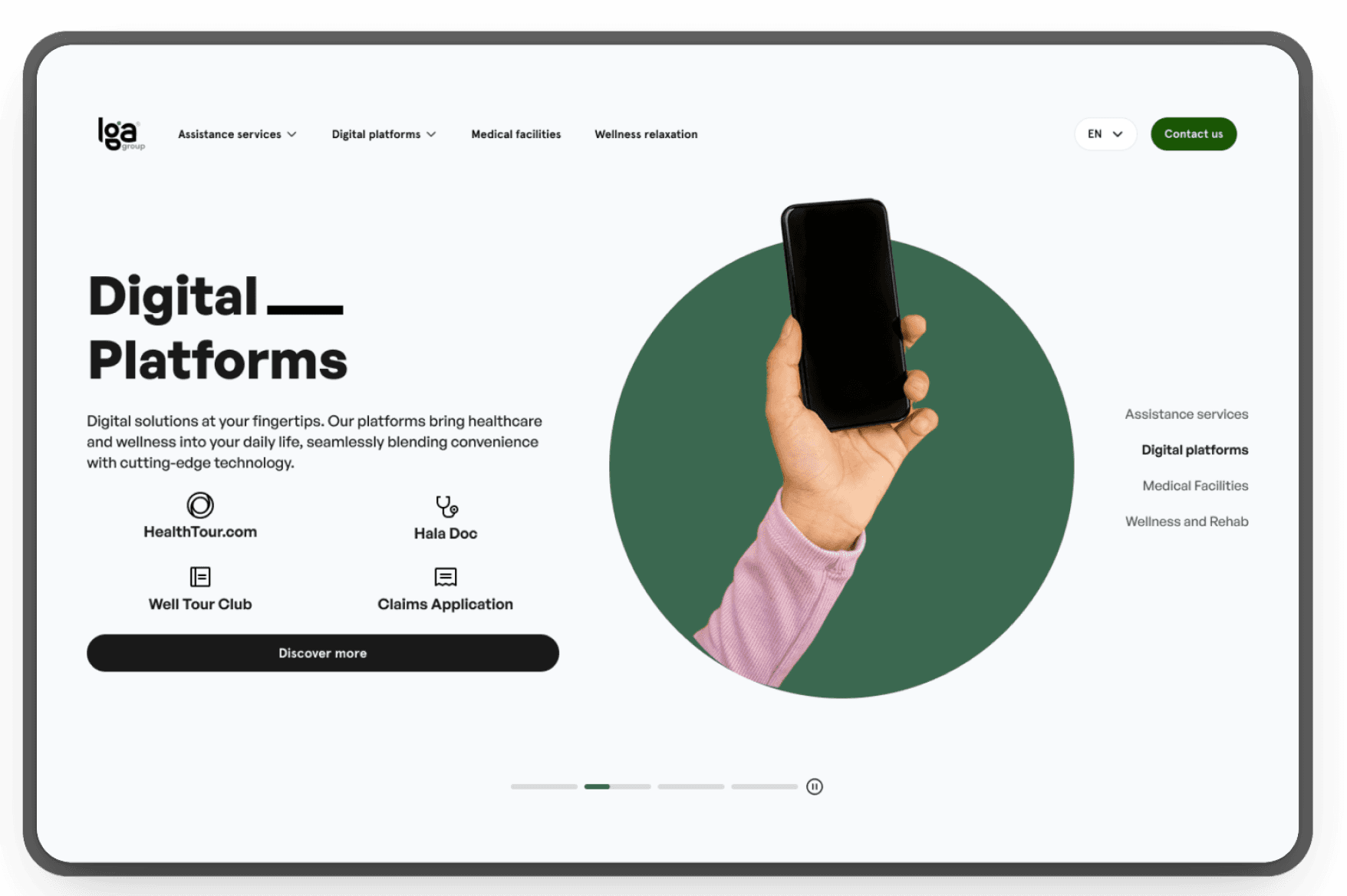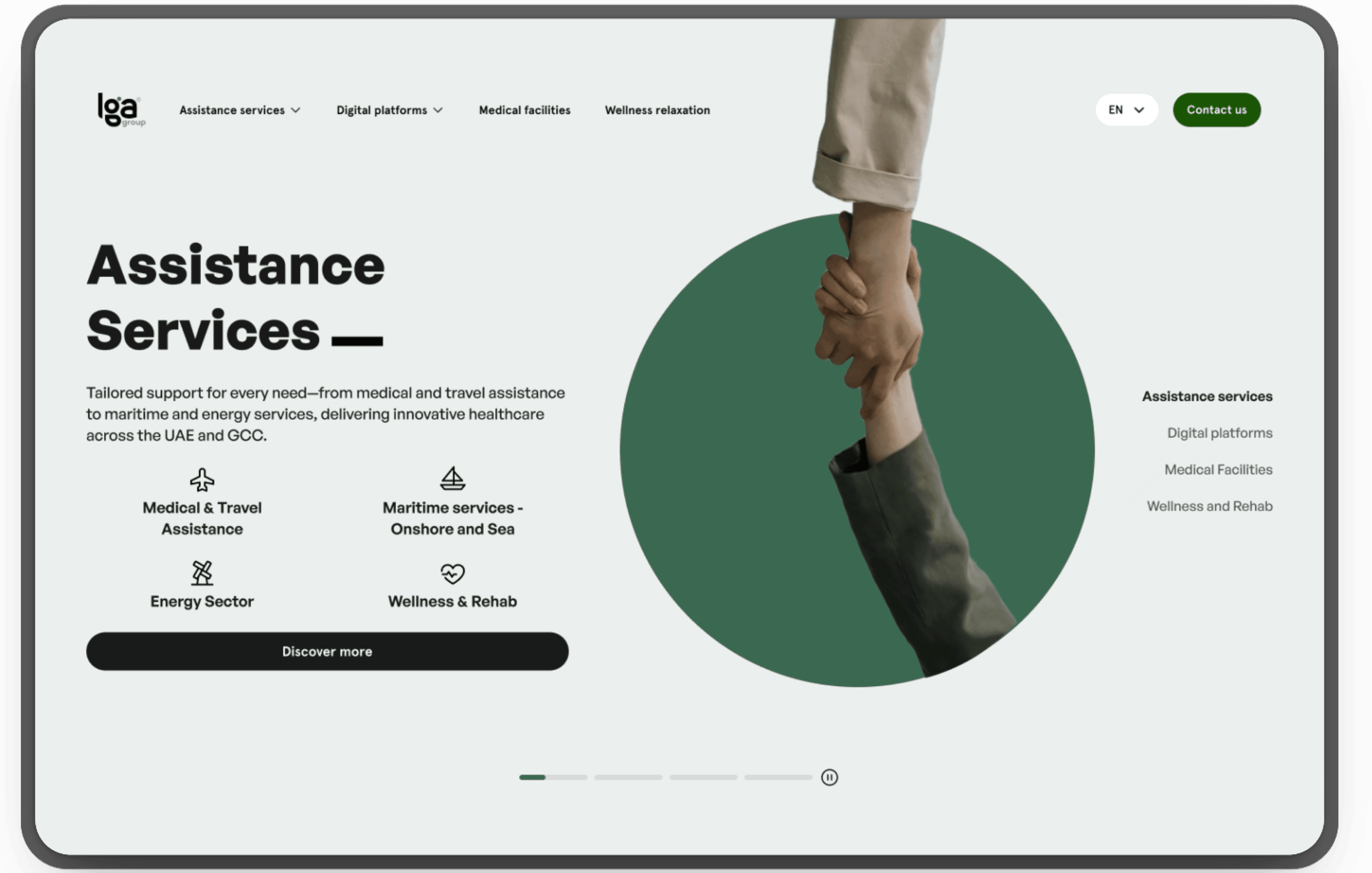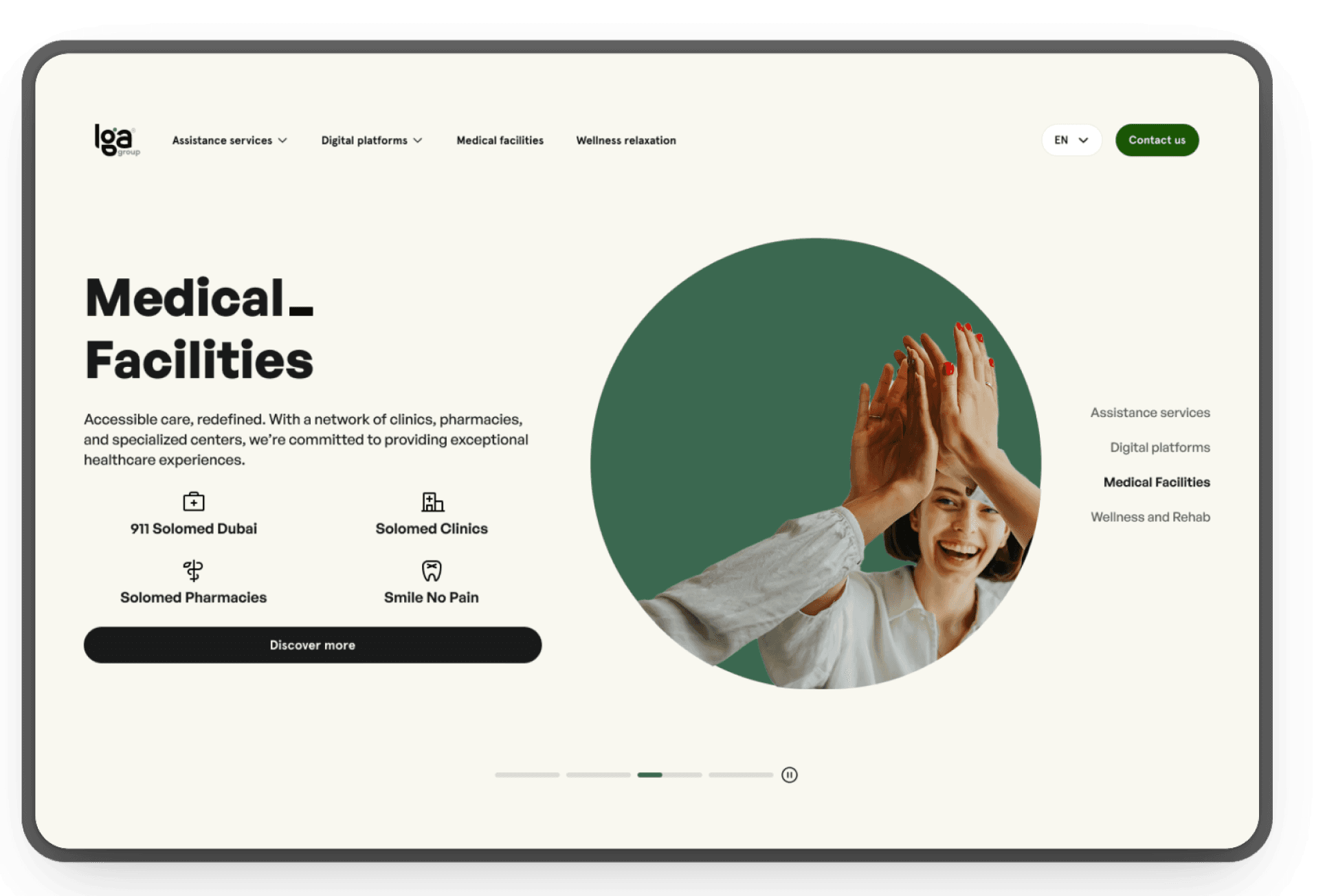 I streamlined the site structure to make their four business arms: Assistance Services, Digital Platforms, Medical Facilities, and Wellness & Rehab, easily discoverable, reducing cognitive load and improving engagement with service categories