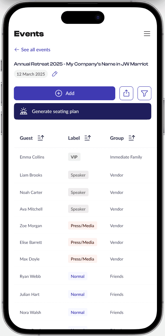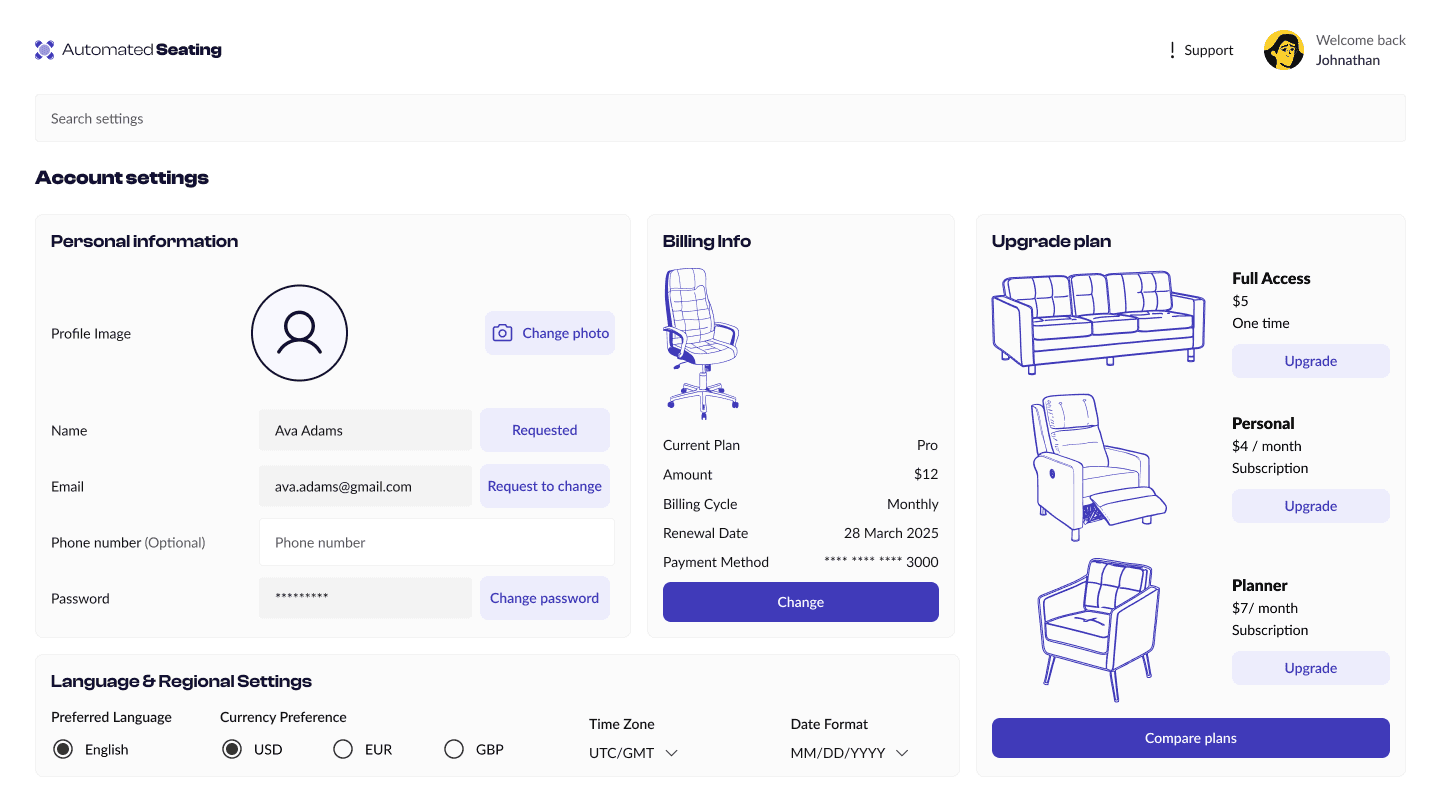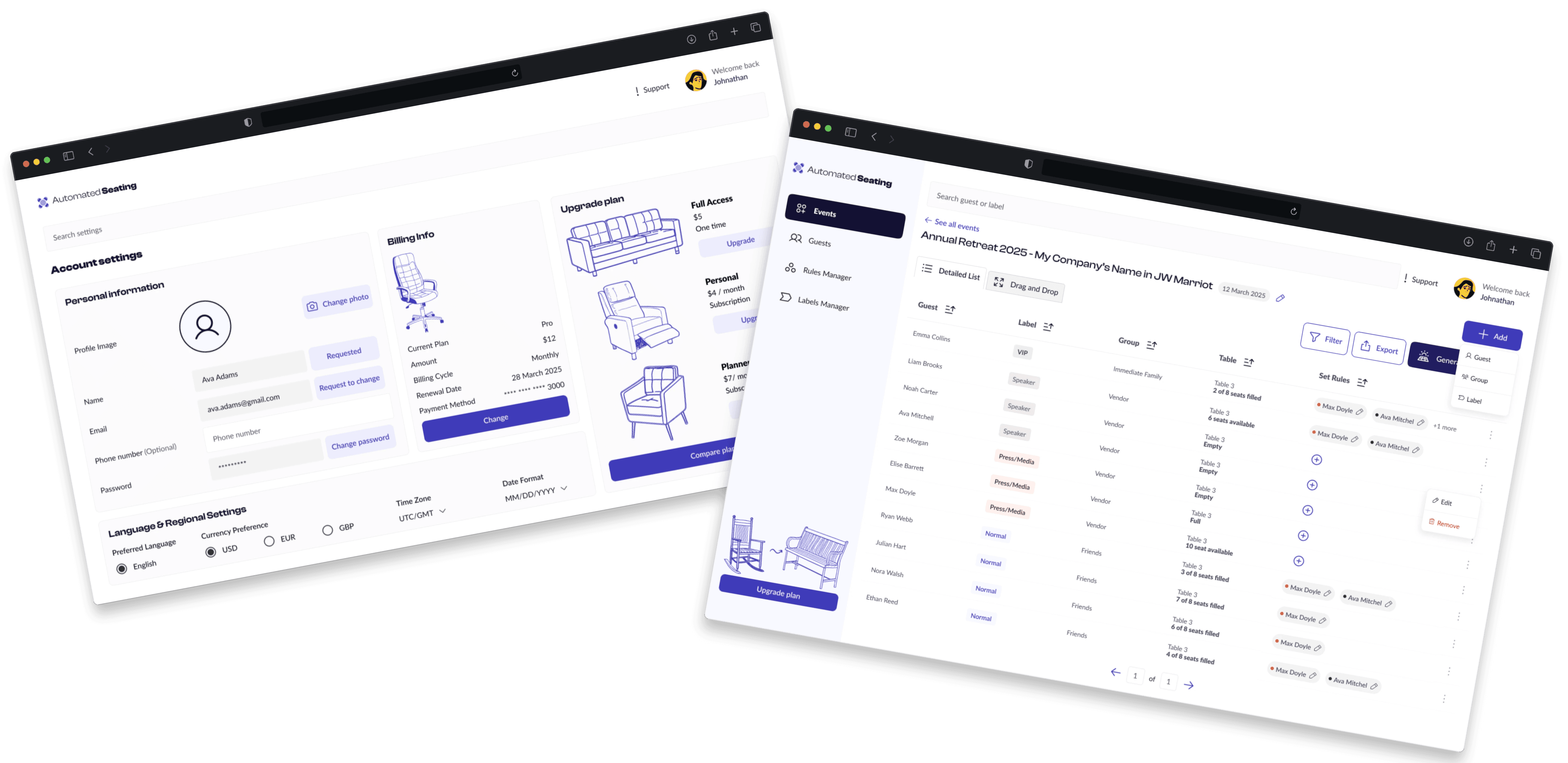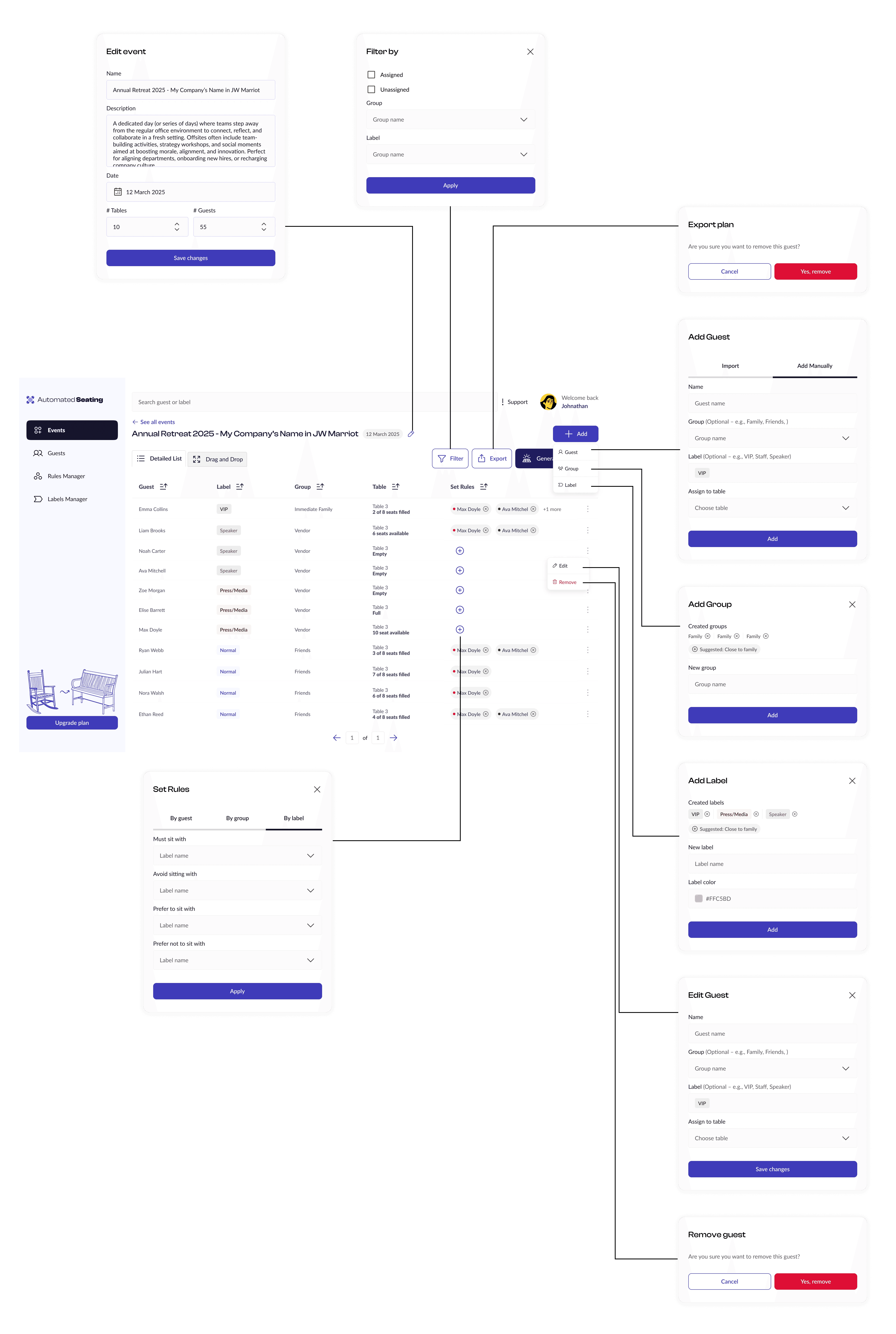 This included table structures, filter panels, modals, and status indicators, designed specifically for the needs of Automated Seating’s workflow.