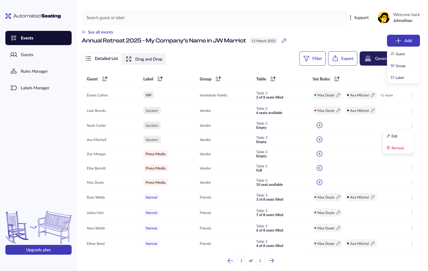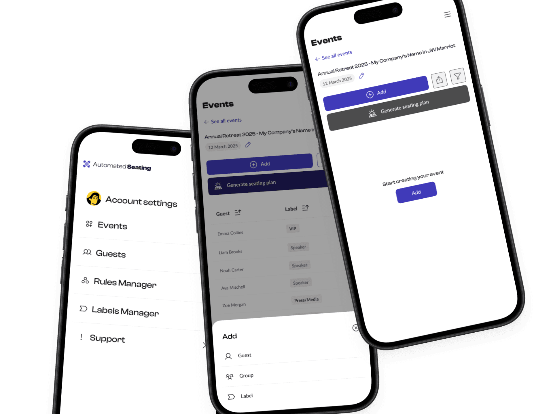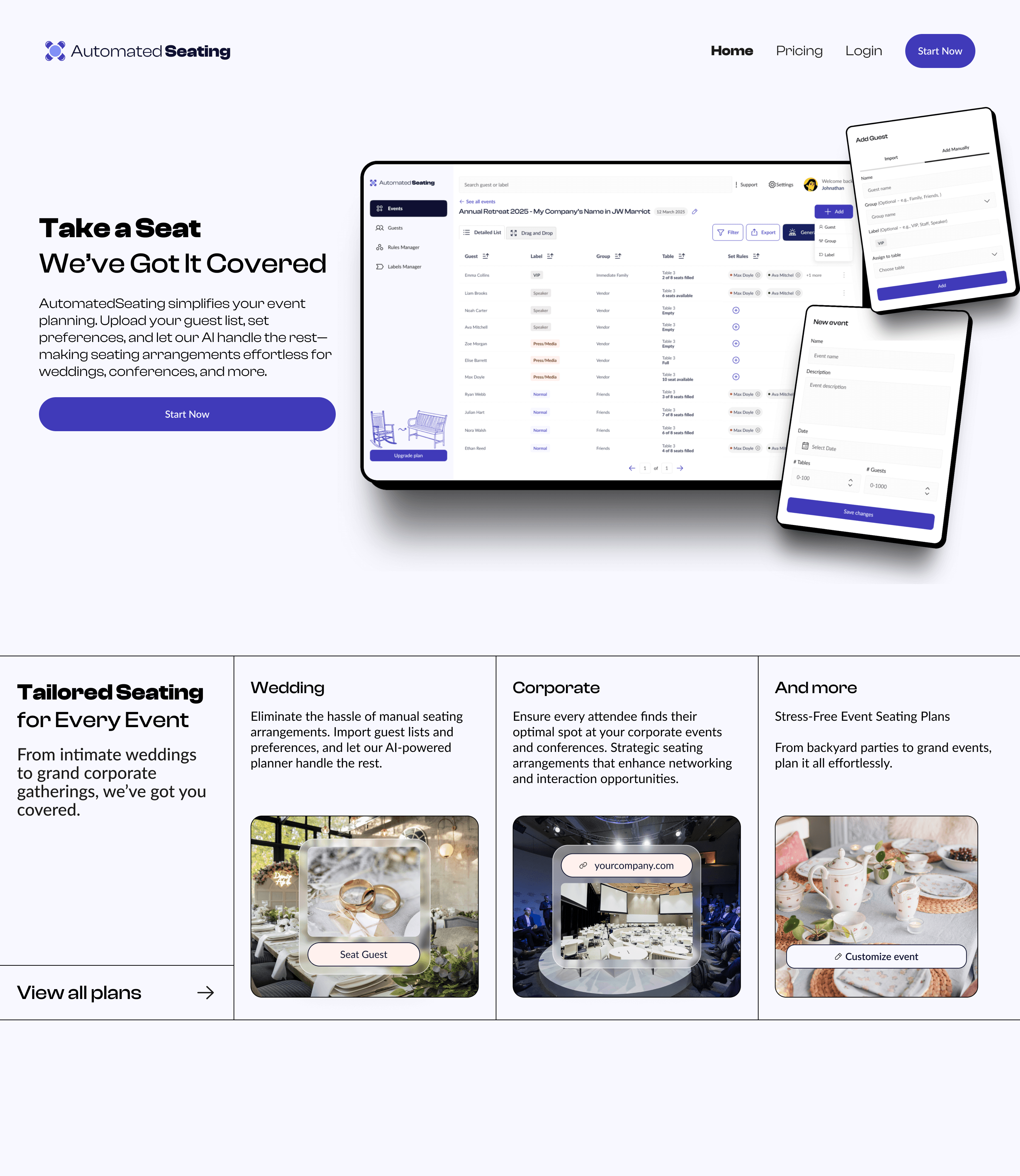 This included table structures, filter panels, modals, and status indicators, designed specifically for the needs of Automated Seating’s workflow.