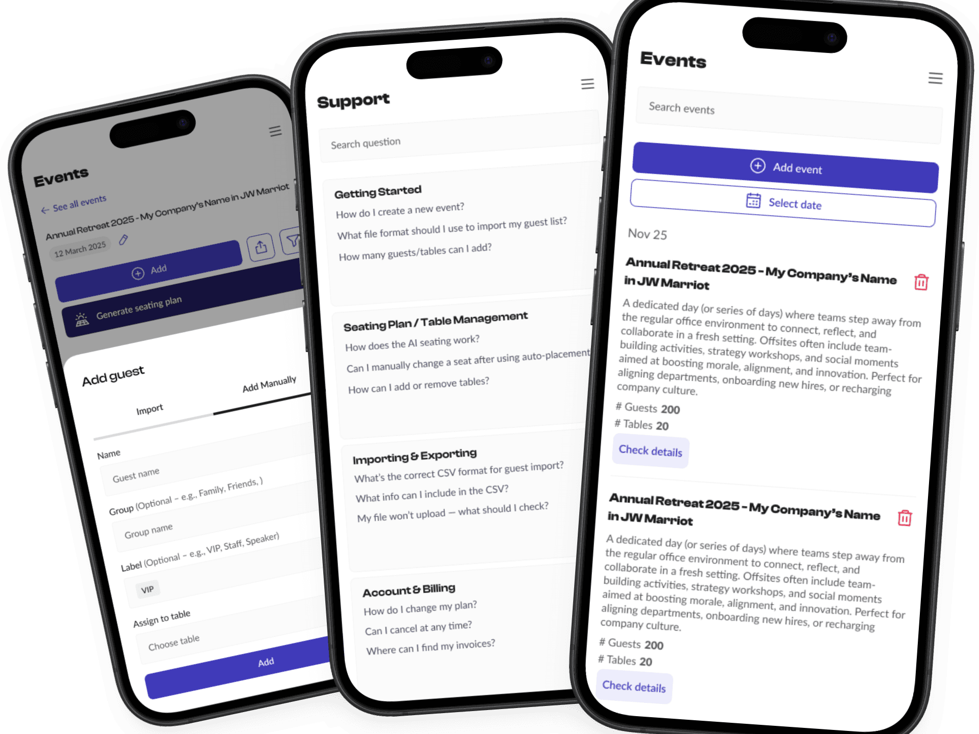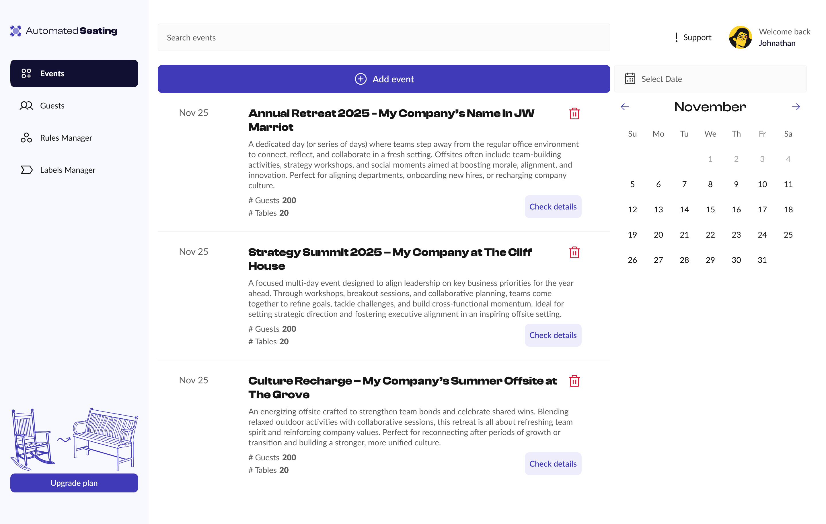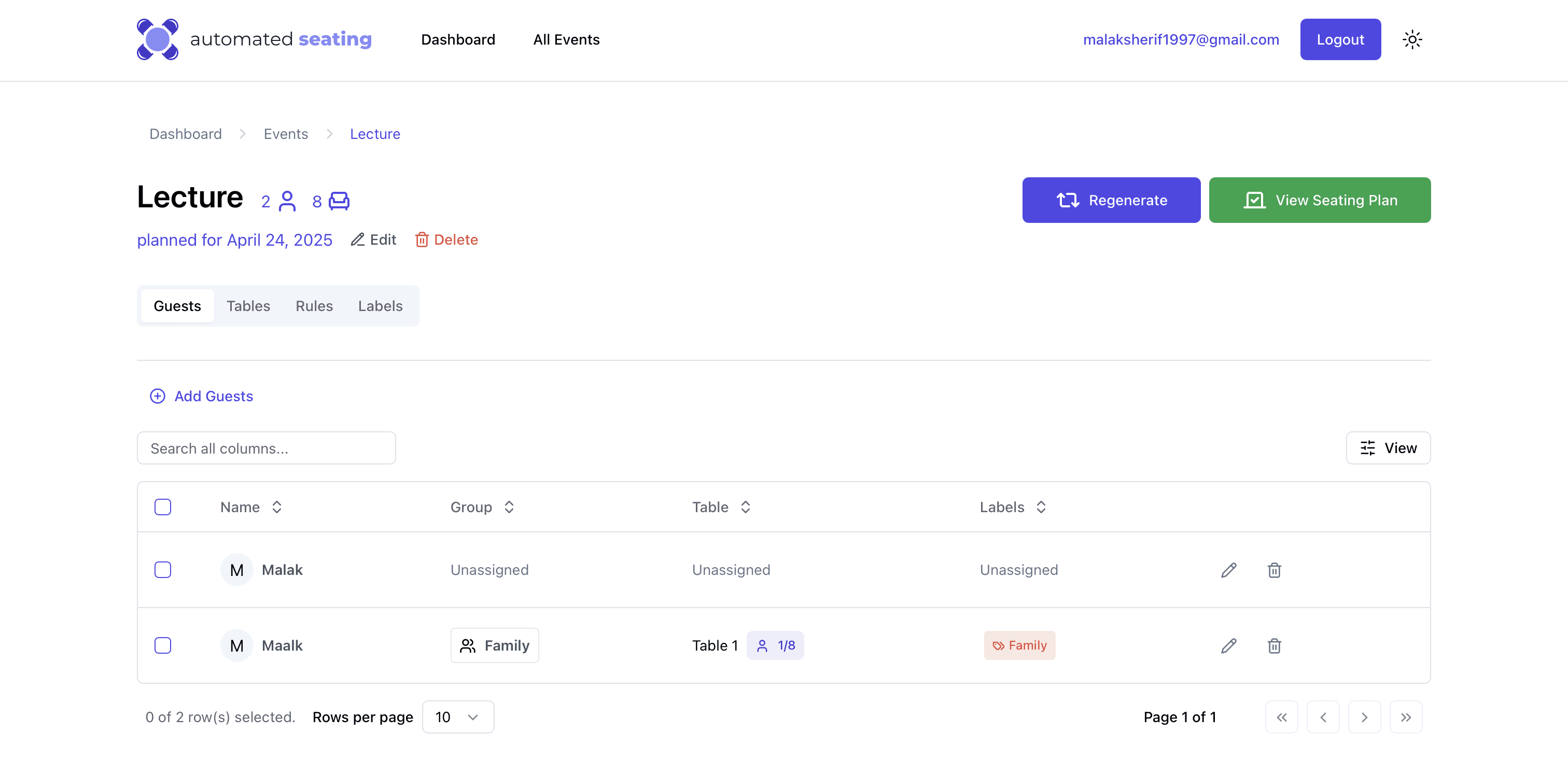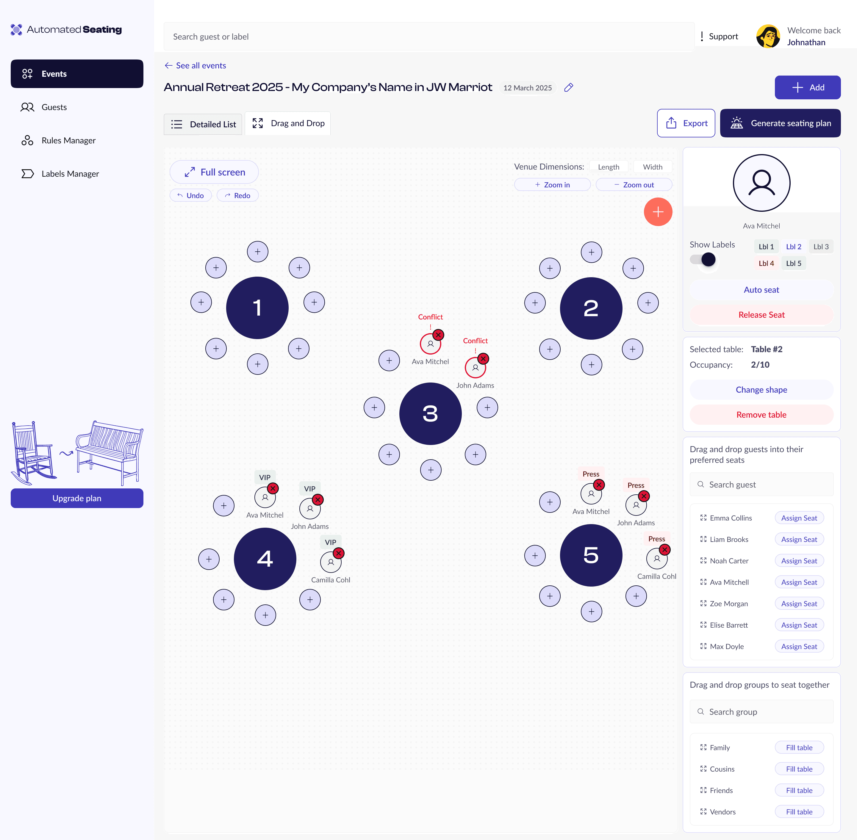 This included table structures, filter panels, modals, and status indicators, designed specifically for the needs of Automated Seating’s workflow.